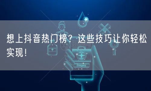 想要上抖音热门榜,需要付出努力和耐心。通过掌握这些技巧,你将更有可能实现这一目标。同时,记得保持创新和真实,与观众建立良好的关系,这样才能在抖音这个竞争激烈的市场中脱颖而出。